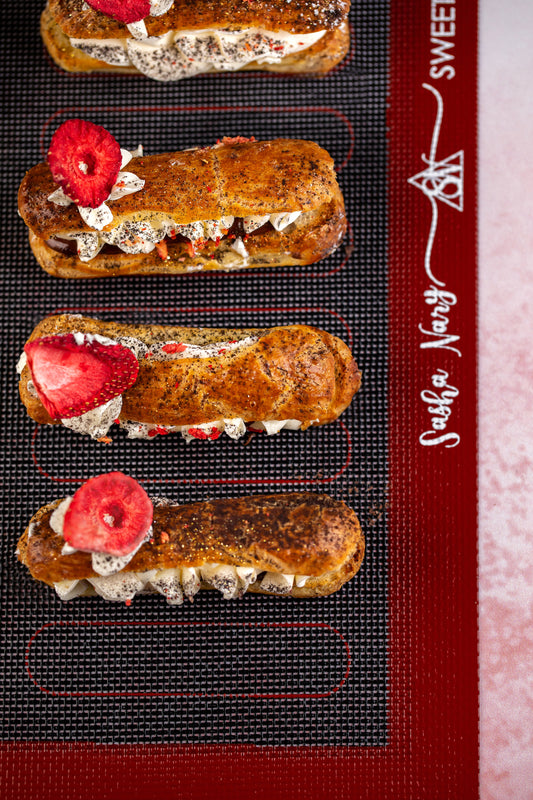 Non Stick Premium Silicone Perforated Mesh Mini Eclairs Baking Mat. Oblong Template.