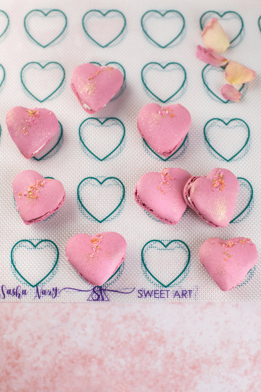 Reversible Fiberglass Coated Premium Silicone Macaron Baking Mat, Round/Bear and Heart Templates. Non-Stick.